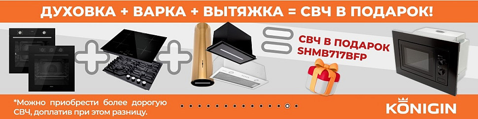 Акция Konigin: При покупке комплекта духовой шкаф, варочная поверхность и вытяжки = В Подарок СВЧУютная Кухня17 ноября 2025Читать далее →